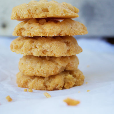 I gotta say, using cereal in an elegant little cheese cracker isn’t something I’d normally think to do. In fact, it seems a bit…cheesy. Ha. But just wait til you taste these and experience the subtle heat from cayenne, the sharpness of the cheese, the crispness from the butter. So good. And SO quick and easy to make!